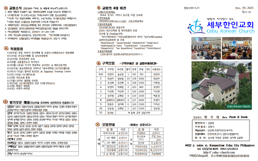 세부한인교회 2025년 11월 9일 주보