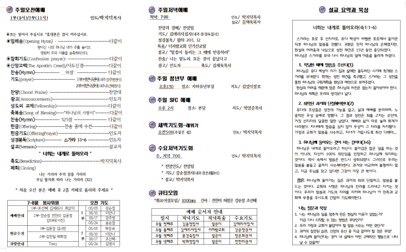 세부한인교회 2025년 8월 10일 주보