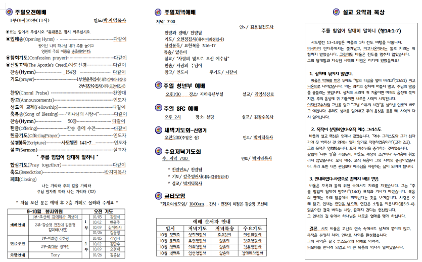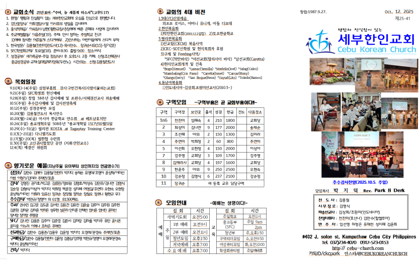 세부한인교회 2025년10월 12일 주보