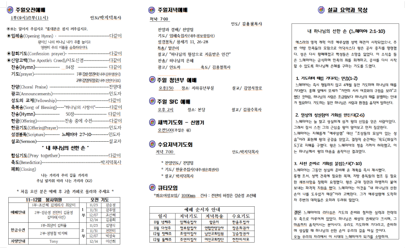세부한인교회 2025년 11월 23일 주보