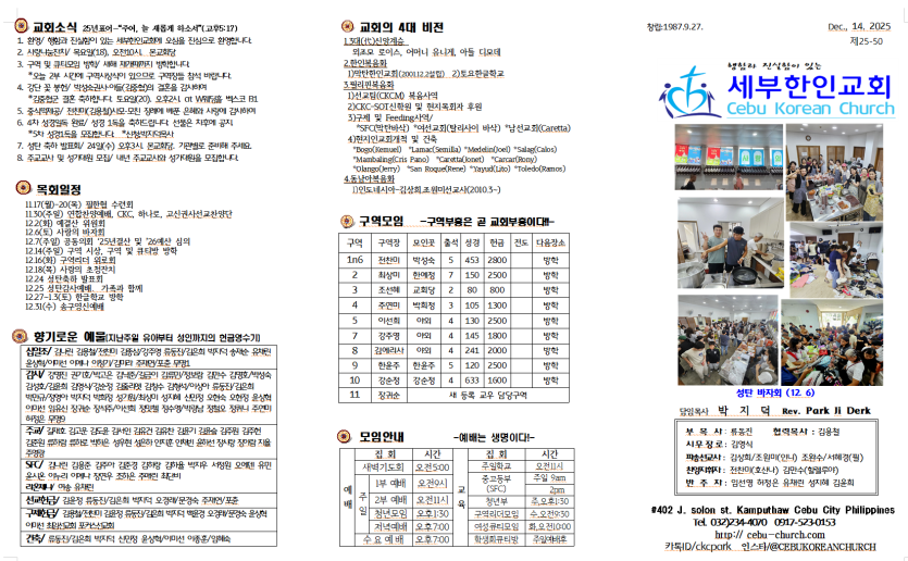 세부한인교회 2025년 12월 14일 주보