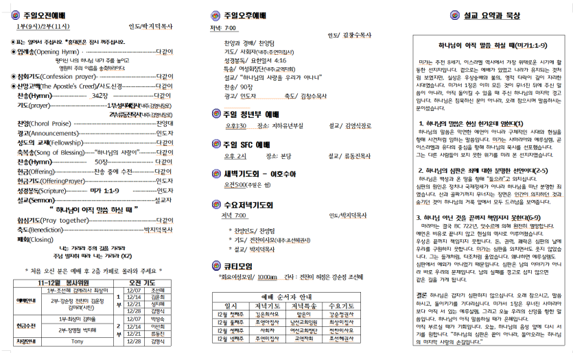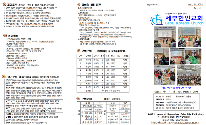 세부한인교회 2025년 12월 21일 주보
