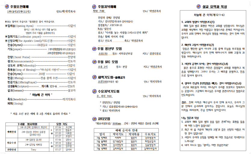 세부한인교회 2025년 7월 20일 주보