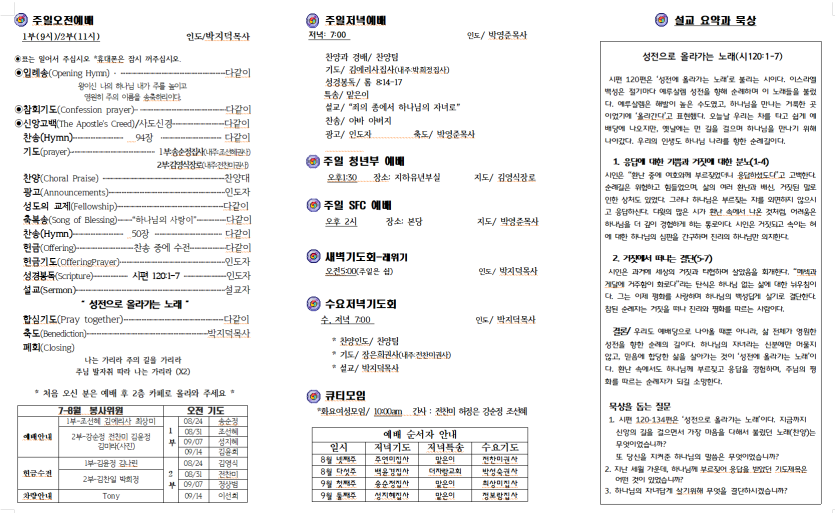 세부한인교회 8월 24일 주보