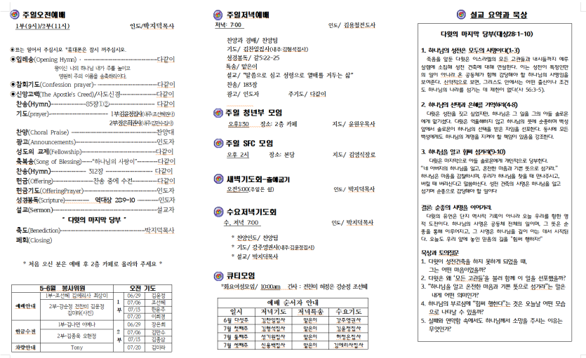 세부한인교회 2025년 6월 29일 주보